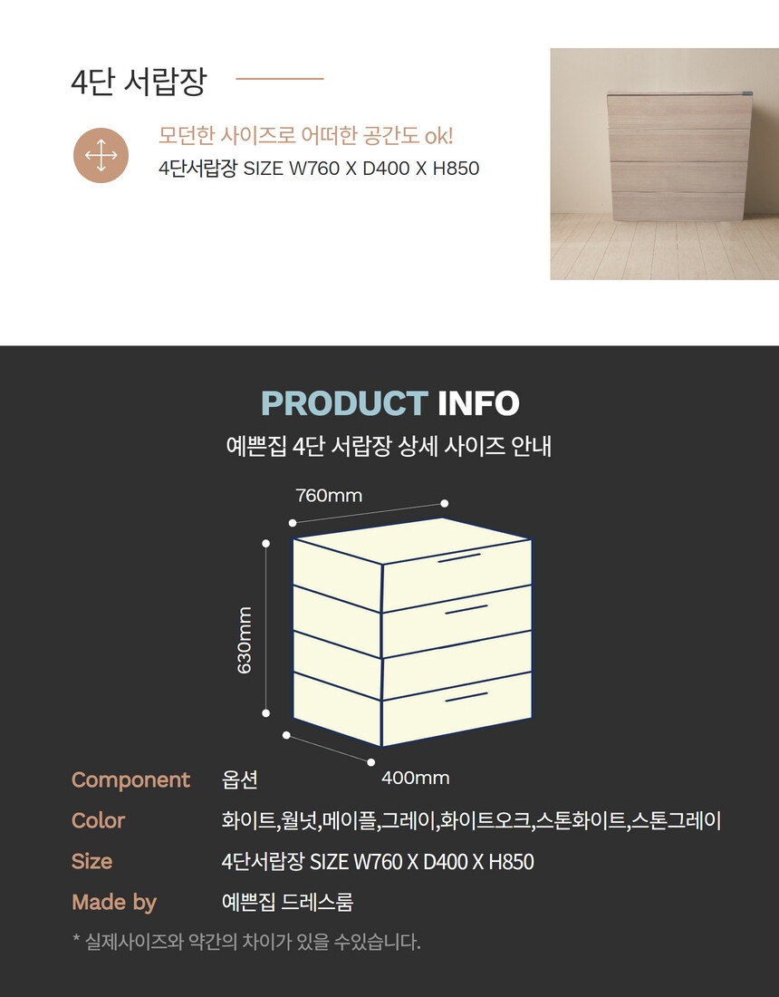 예쁜집 드레스룸의 4단 서랍장입니다.