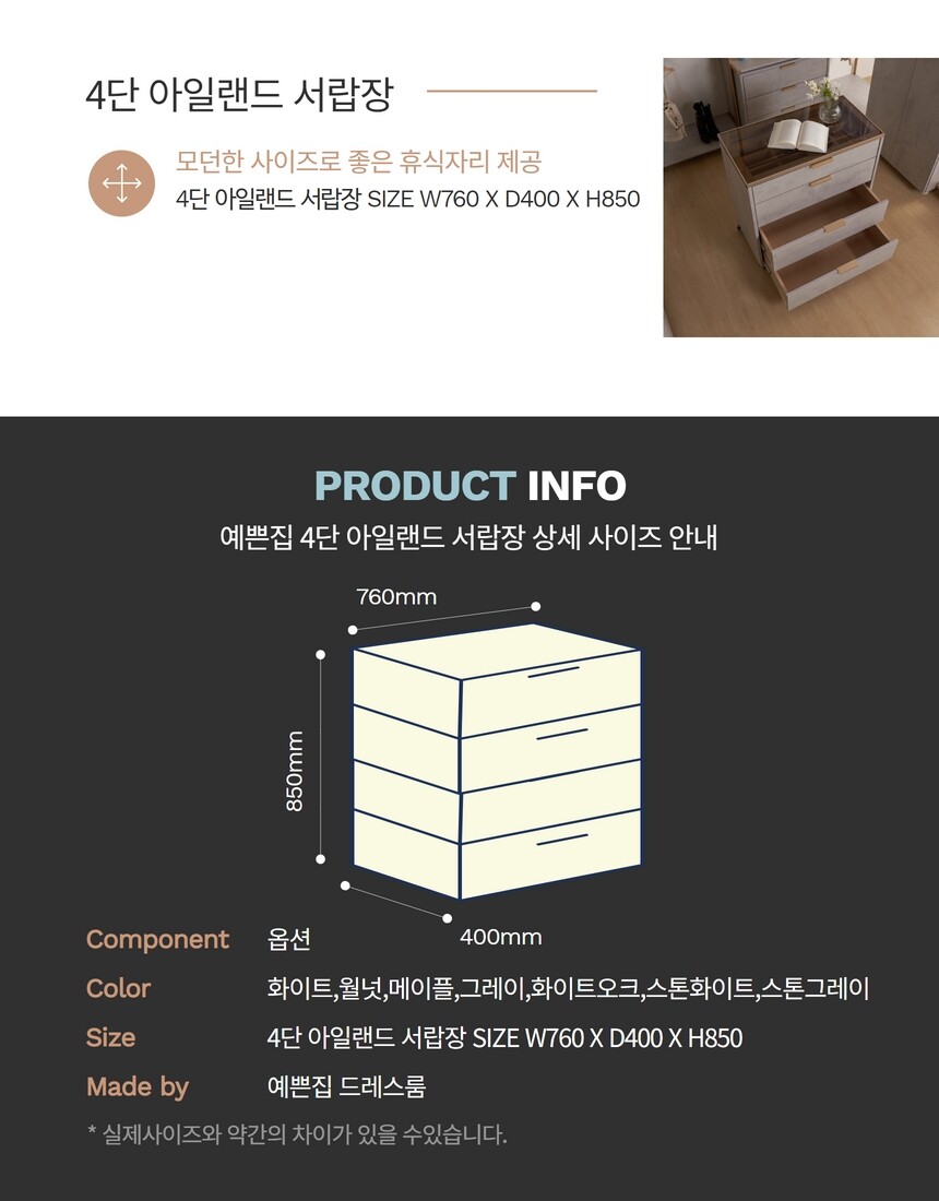예쁜집 4단 아일랜드서랍장-프리미엄