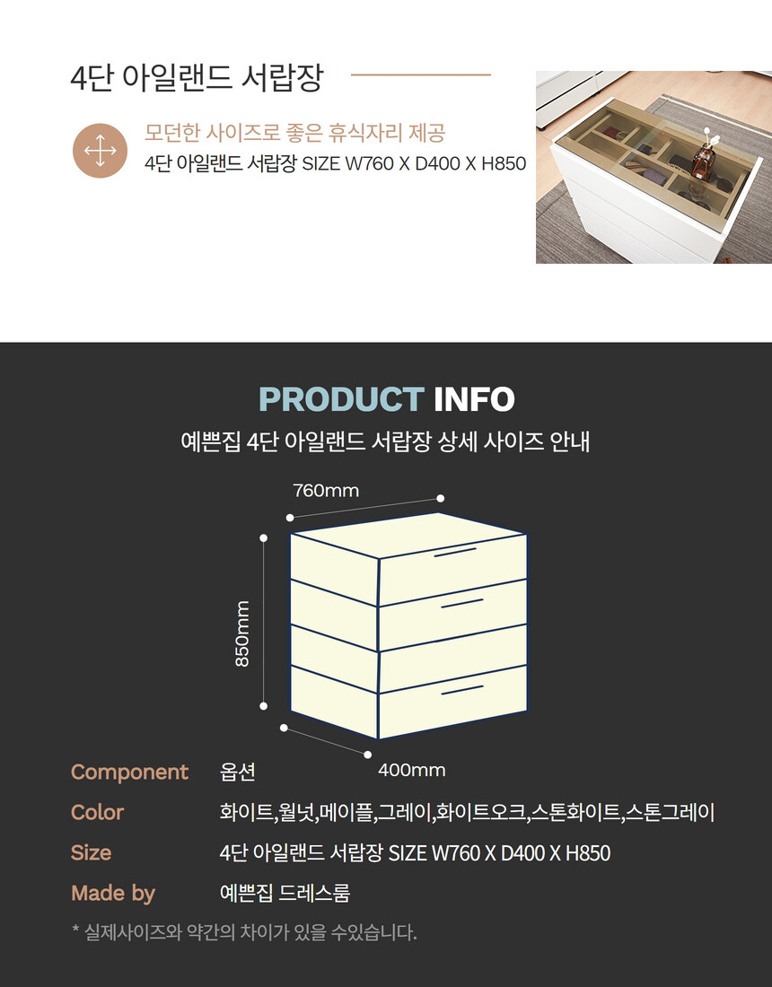 예쁜집 4단 아일랜드서랍장-스탠다드