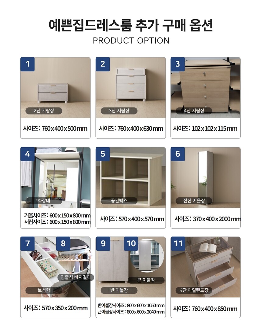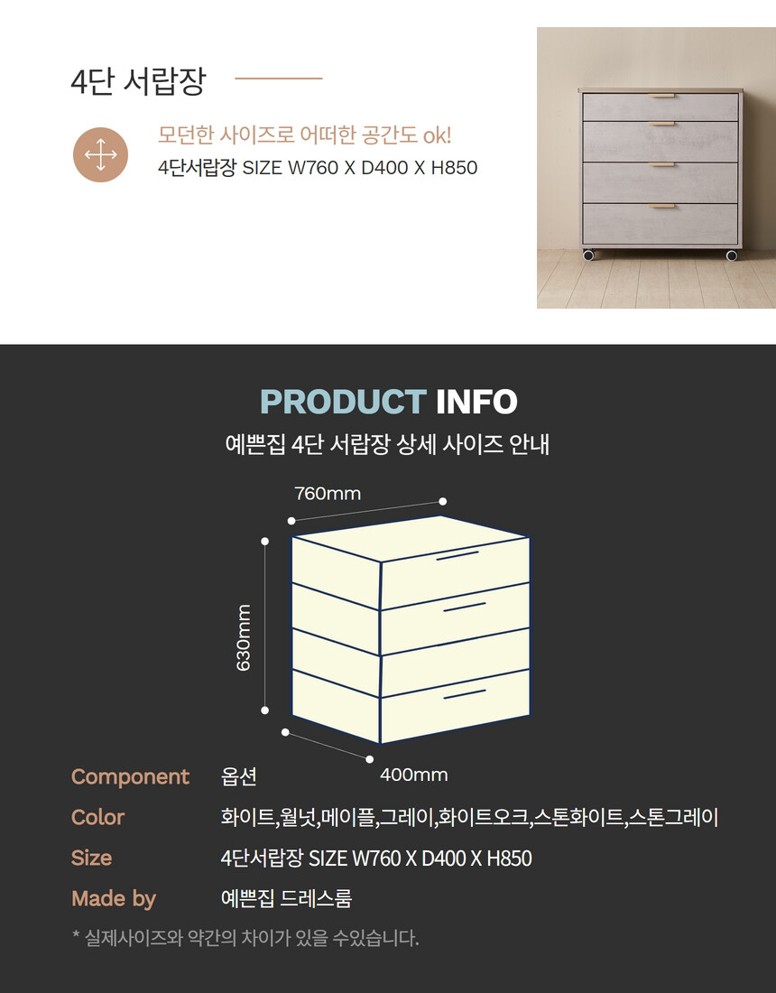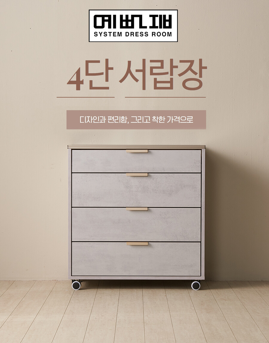 예쁜집 드레스룸의 4단 서랍장입니다.